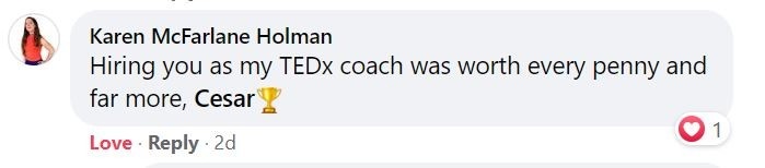 "Cesar's coaching and expertise has blown me away. I landed my TEDx talk on my first application!"